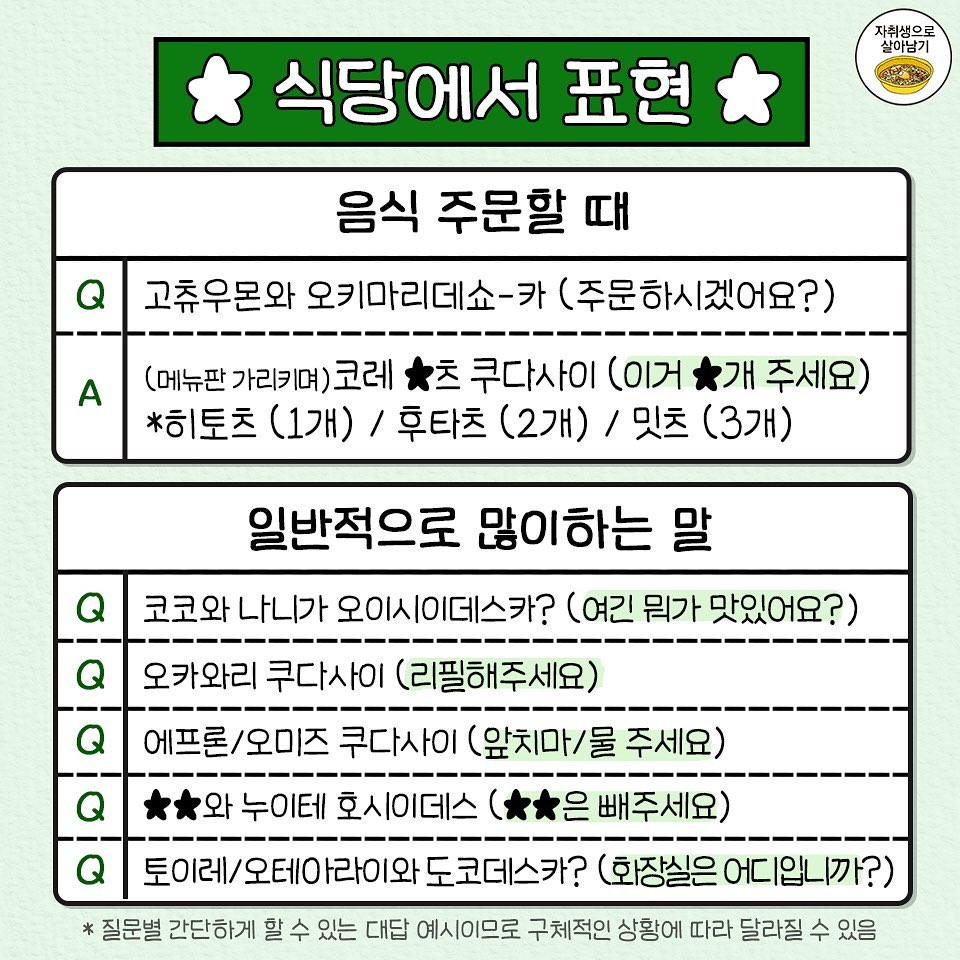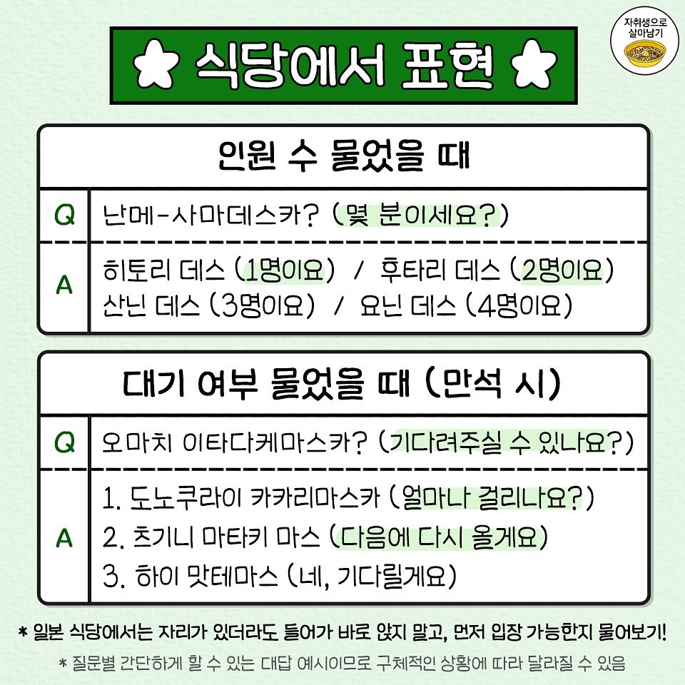- 식당에서 표현