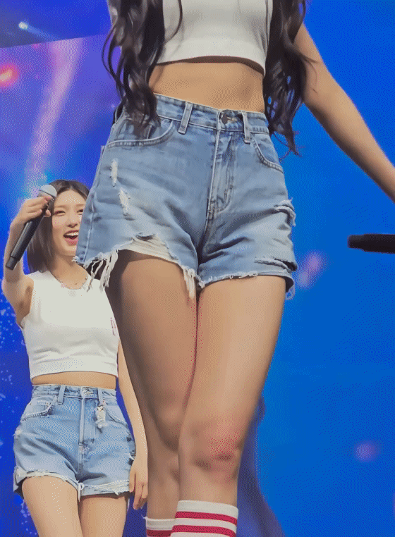 아이브(IVE) 장원영 크롭티 핫팬츠 몸매 레전드 움짤 모음.gif